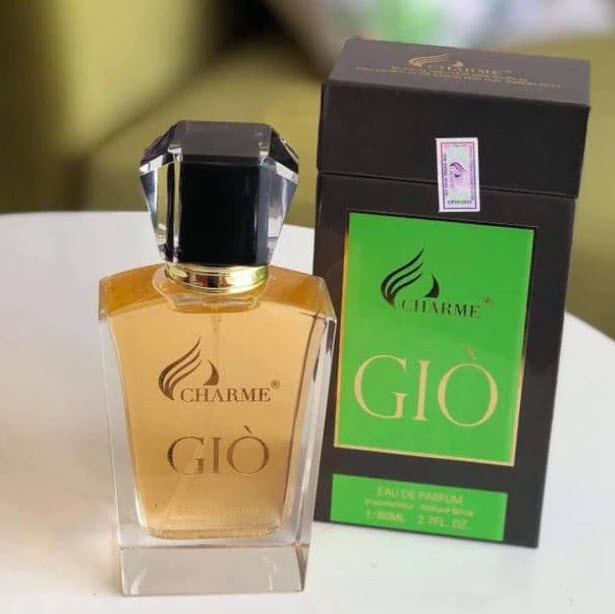Charme Giò – hương thơm dành cho nam giới là một mùi hương của sự tự do, đầy gió và nước. Hỗn hợp mùi hương này được hình thành từ sự hòa hợp hoàn hảo giữa mùi hương ngòn ngọt mằn mặn của nước biển và ánh nắng ấm áp mơn trớn trên làn da của bạn. Aqua di Gio đầy ánh nắng mặt trời Địa Trung Hải nóng như thiêu đốt. Hương cam quýt đăng đắng với hương thơm của hương thảo quyện với vị mặn của biển và tinh chất hoa nhài trong suốt.